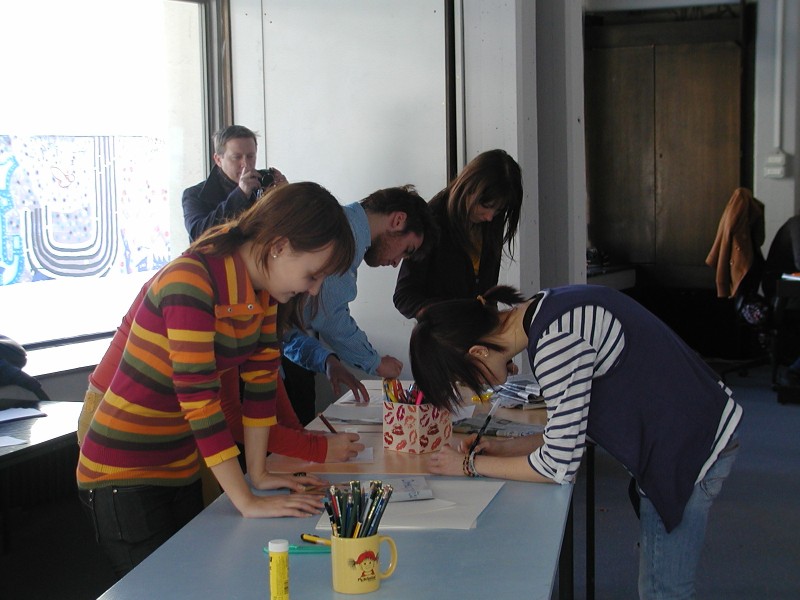 Dijaki so naredili svoje grafite in jih nato obesili na drugi strani zidu v Galeriji Velenje. Delavnico je vodila avtorica razstave Zora Stančič. Udeležili so se je dijaki Gimnazije Velenje – likovna smer.