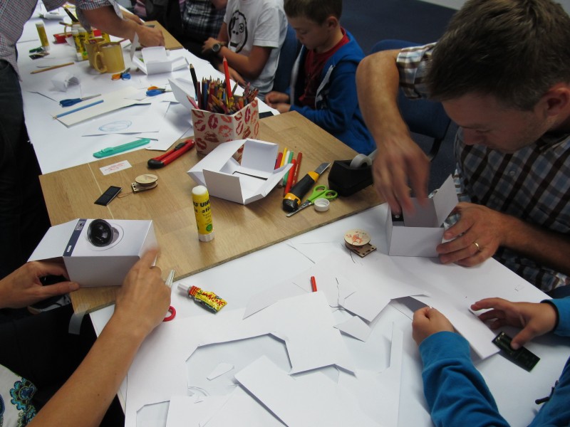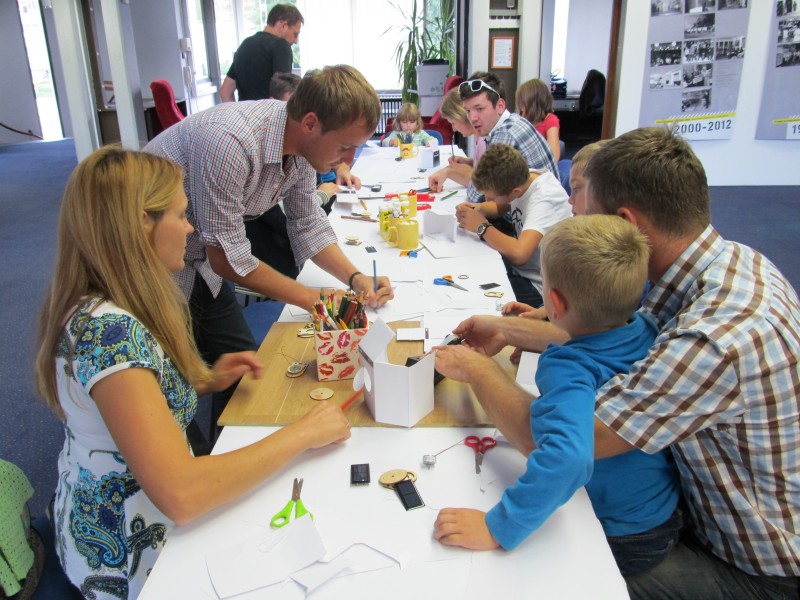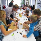 Delavnica je bila nadaljevanje robotske delavnice lanskega leta, kjer so otroci spoznali osnove elektronike. Skupaj s starši so tokrat naredili hranilnik v obliki pralnega stroja, pečice, hladilnika ter jih opremili z motorčkom in sončno celico. Namen delavnice je bil spodbuditi otroke k ustvarjanju ter jih seznaniti z naravnimi energetskimi viri. Delavnico je vodil Miha Cojhter, študent na Kunst Universität Linz.