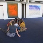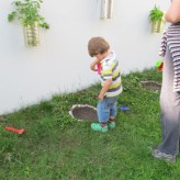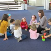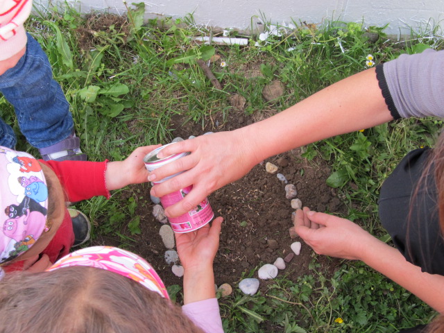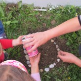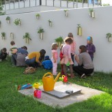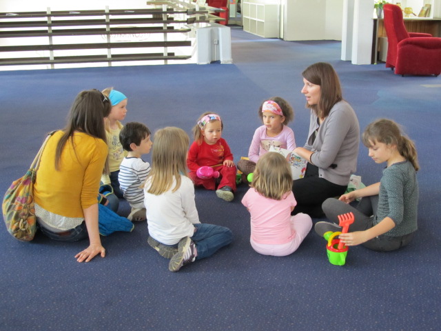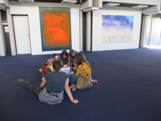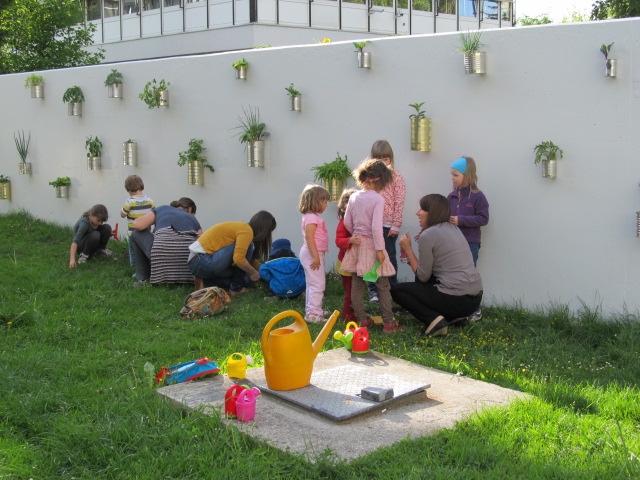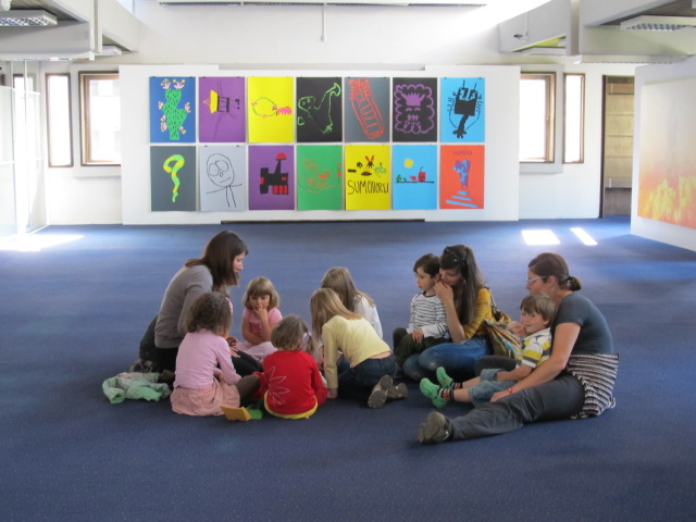 Ob razstavi SUSTainART so otroci poslušali pravljico Angleške rožice in zasadili v atriju Galerije vsak svoj vrtiček. Vodila Urška Ojsteršek.