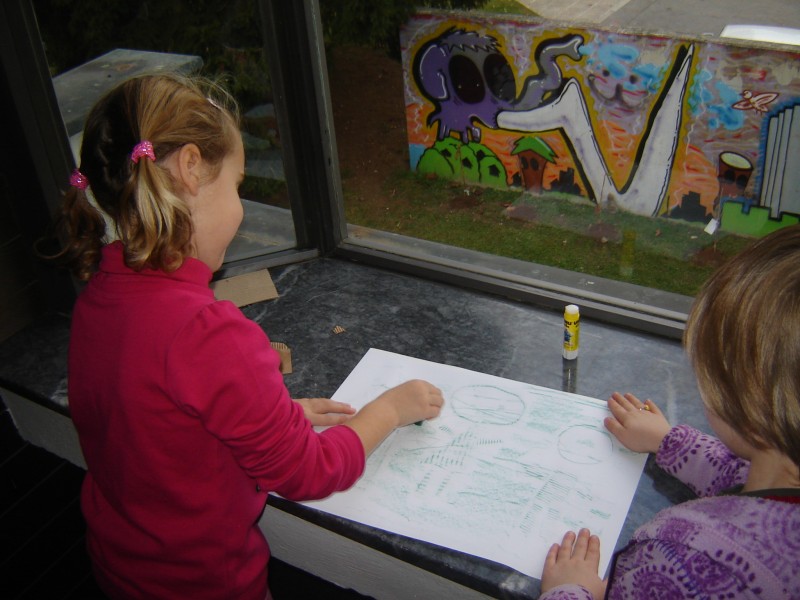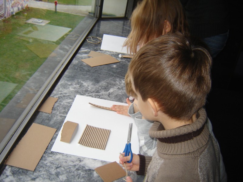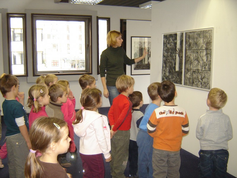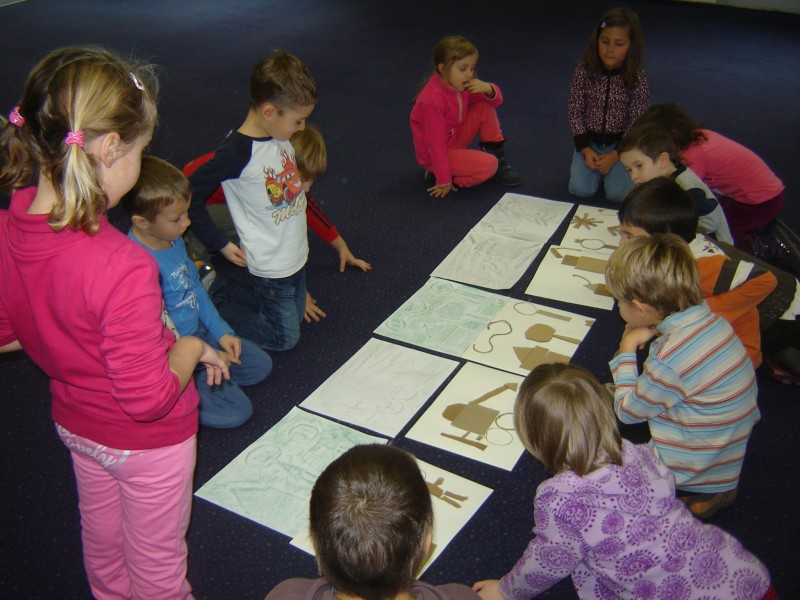 V delavnici so se otroci seznanili z grafično tehniko frotaž. Delavnice je pripravila in vodila likovna pedagoginja Nina Cvirn.