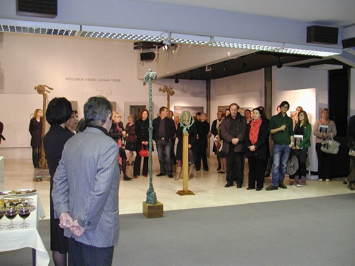V posameznih zgodbah se na skupni razstavi srečujejo antropomorfne figure in ustvarjalne asociacije slikarke Apolonije Simon in kiparja Dušana Tršarja. (iz besedila Milene Koren Božiček v katalogu razstave)