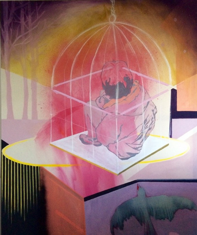 Naslovna slika: Uršula Skornšek, The Shift, 2017, akril, kreda na platnu, 180 x 150 cm