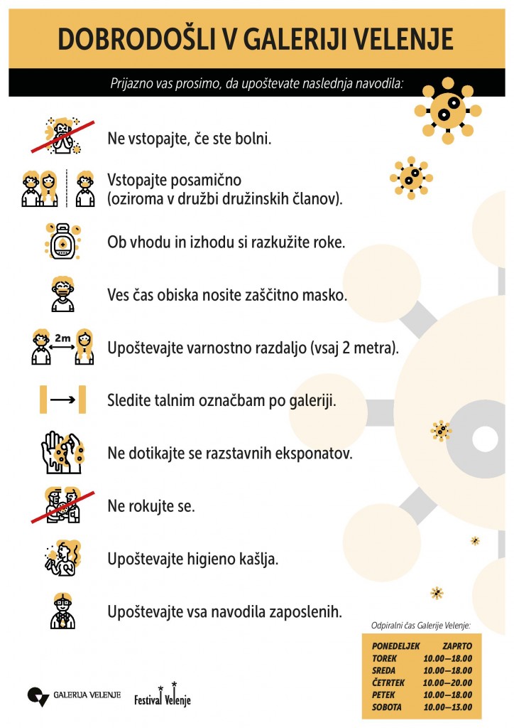 Prijazno vas prosimo, da ob obisku galerije upoštevate priporočila in navodila. Za vas in tudi za nas!