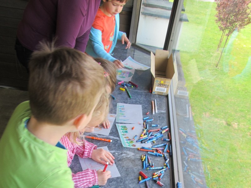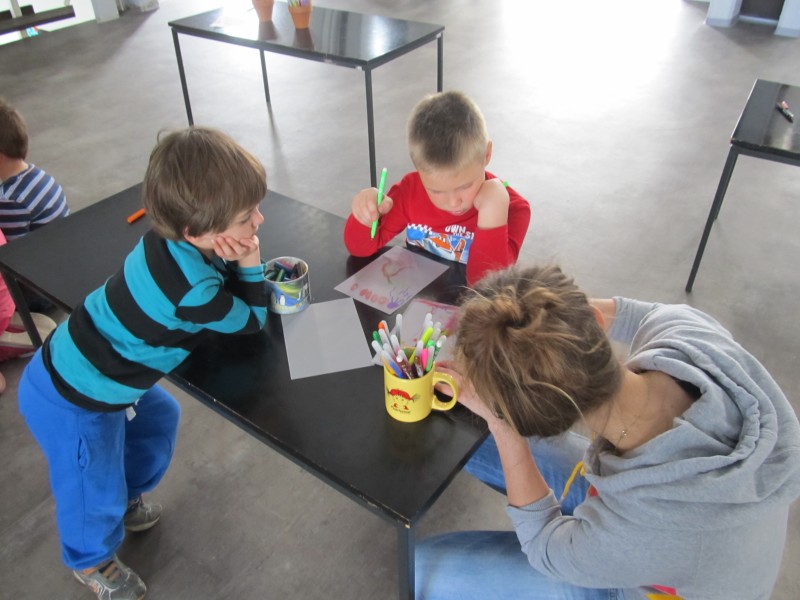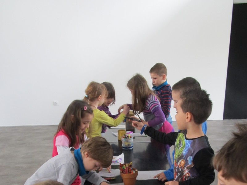 Po ogledu razstave so otroci ustvarjali večplastne slike na paus papirju. Vsa dela otrok so bila razstavljena v zgornjem nadstropju Galerije v času razstave Barbare Drev. Delavnice sta vodila Kornelija Križnič in Arpad Šalamon. Delavnico 1. aprila je vodila avtorica, akademska slikarka Barbara Drev. Delavnic se je udeležilo šest skupin iz Vrtca Velenje.