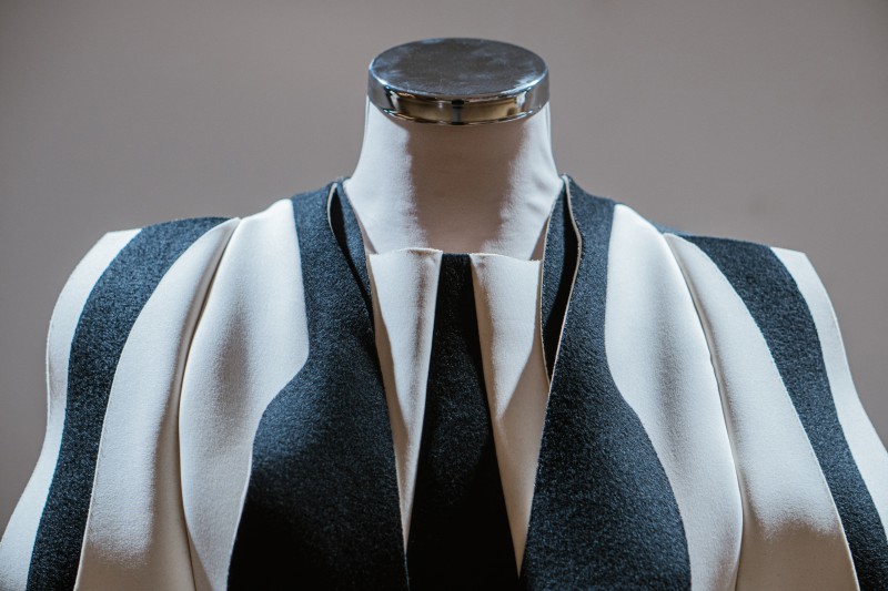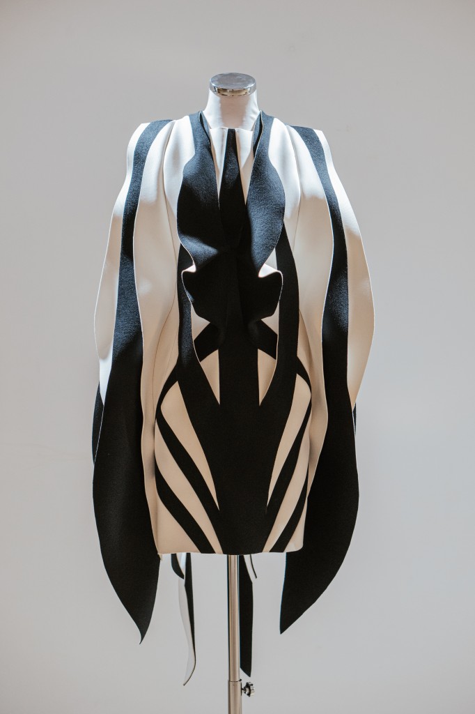 Črno bela obleka, zebraNeopren, 100% kašmirRoyal College of art, 2016