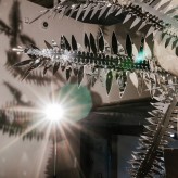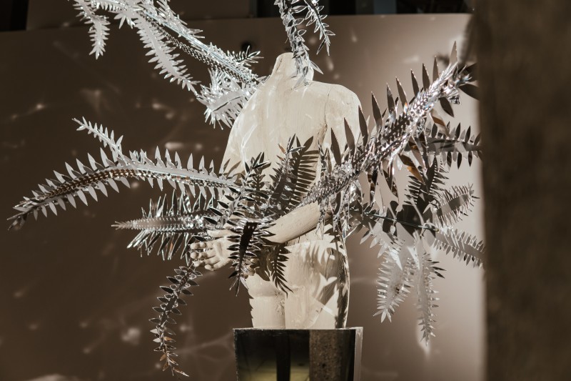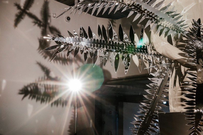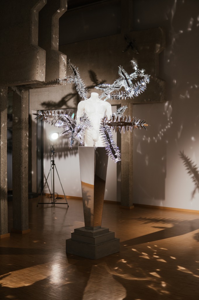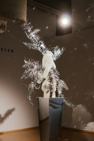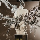 Klasični elementi podstavka z dodatkom svetlobe skupaj ustvarijo kompozicijo skladnosti materialov in ustvarjajo s svetlobnim odbojem prav posebno vzdušje v galeriji.