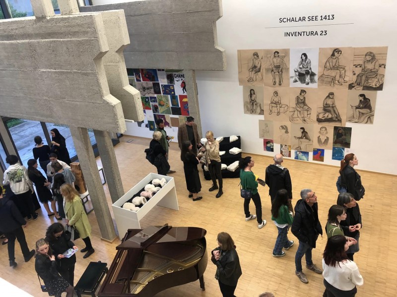 V Galeriji Velenje bodo odprli dve razstavi: v spodnjem nadstropju tradicionalno razstavo likovnih del, ki so jih v tem šolskem letu ustvarili dijaki Umetniške gimnazije Velenje - likovne smeri z naslovom INVENTURA 23, v zgornjem nadstropju pa razstavo akademskega slikarja Klemna Zupanca z naslovom Schalar see 1413.