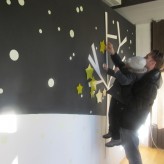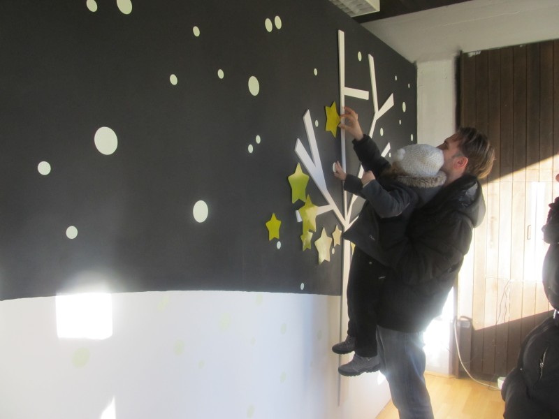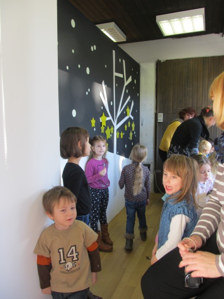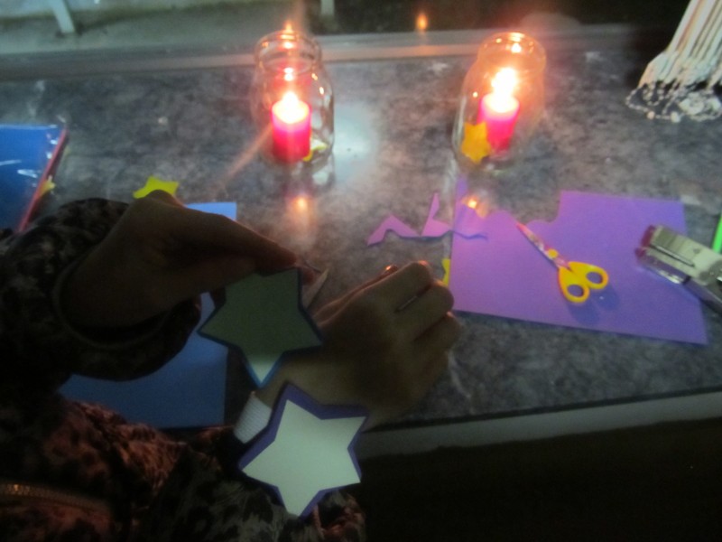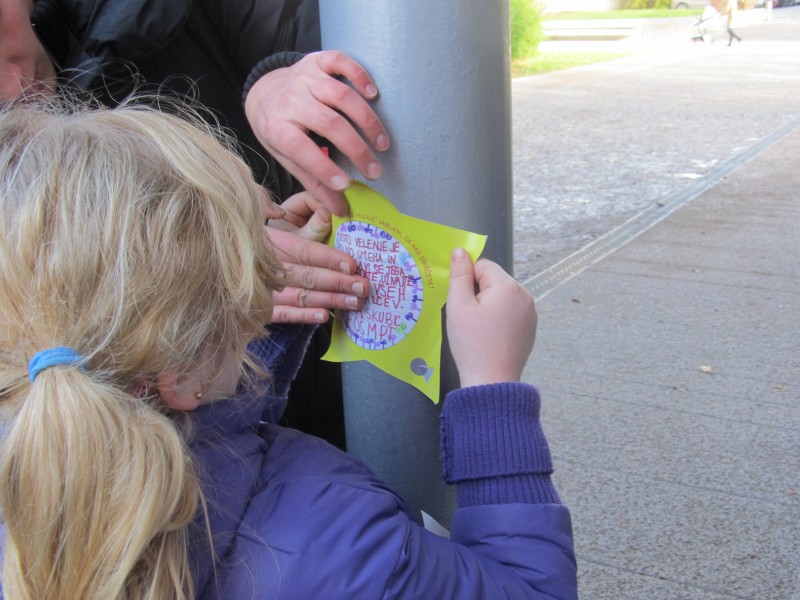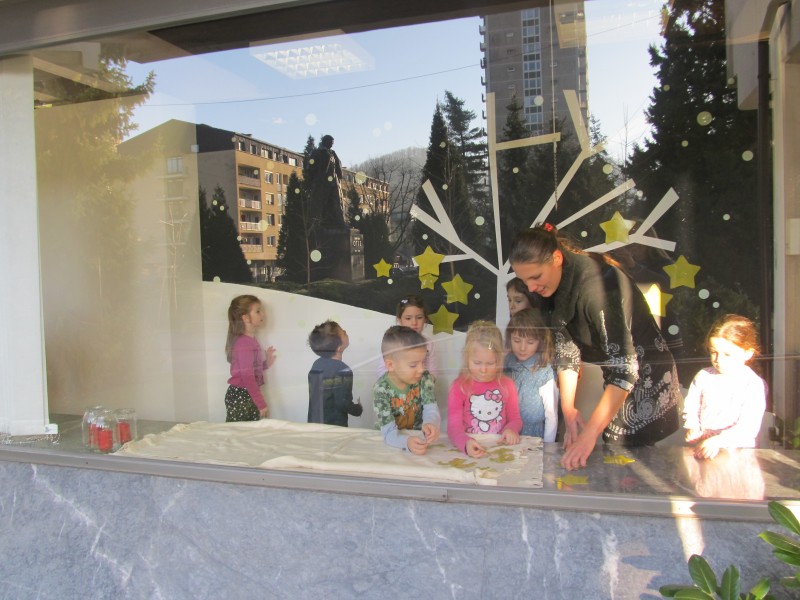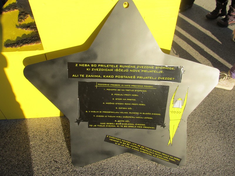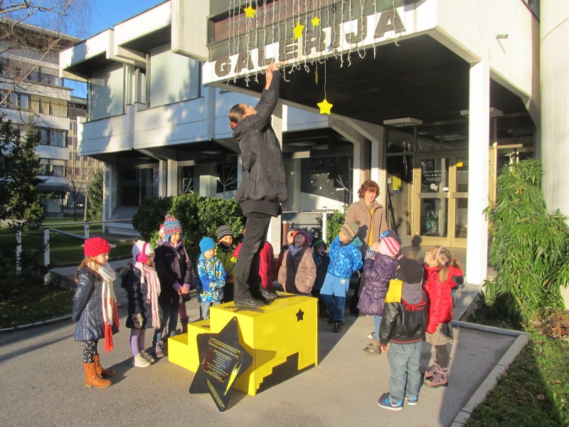 Čez dan so se zvrstile tri delavnice. Najprej so otroci iskali in obešali zvezde na drevesa v izložbi galerije. Nato so tretješolci OŠ MPT za občane Velenja nalepili risbe in lepe misli na 25 točk centra mesta. Popoldan pa so izdelovali praznične zapestnice z zvezdico, ki sveti v temi in ima vlogo kresničke.