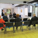 Predstavitev kataloga mrežnega projekta EPK, Uf, industrija v katerem je bila Galerija Velenje udeležena s projektom Gorenje z vizijo. Predstavitev je vodila mag. Milena Koren Božiček.